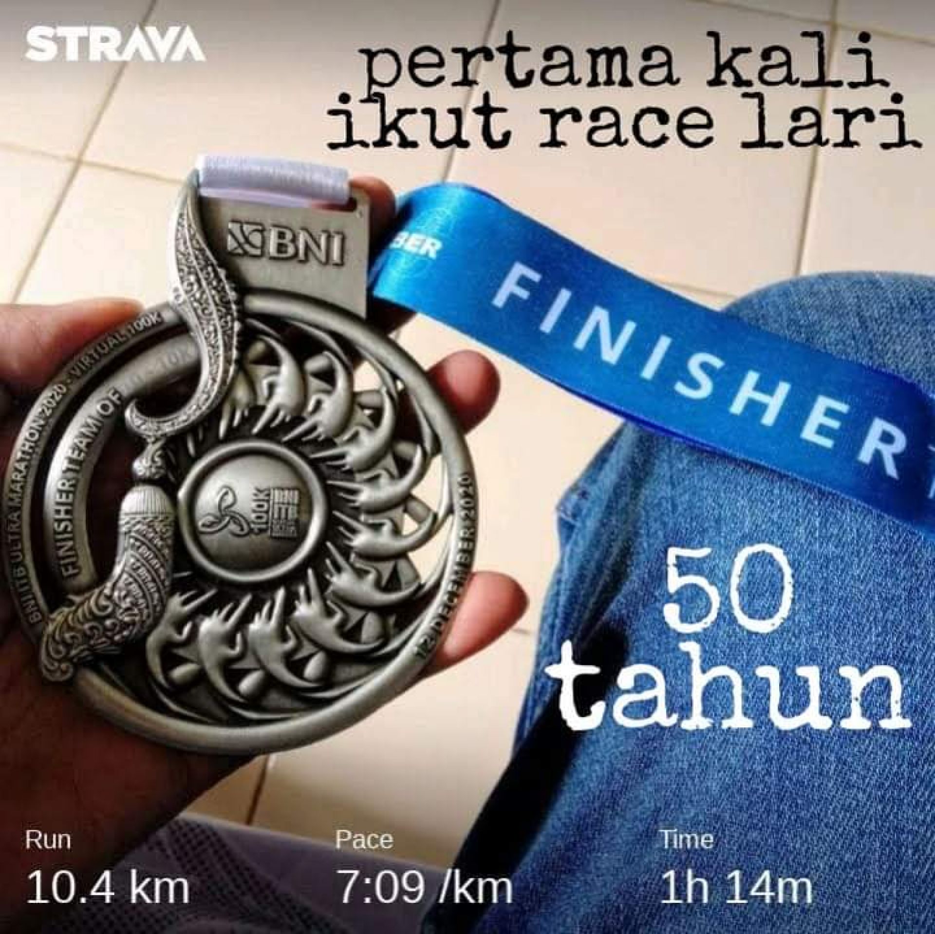 Hari itu demikian seru. Alhamdulillah saya sendiri – yang tahun 1993 lulus dengan IP dua koma alhamdulillah - ternyata di tahun 2020 lulus berlari 10K dengan pace 7 koma alhamdulillah. Catatan tersendiri. Janganlah dibandingkan dengan teman-teman yang lain, yang memang adalah pelari. Masa pelari kemaren sore dibandingkan dengan pelari kemaren dulu. Seperti membandingkan sarjana nyaris DO dengan sarjana nyaris Summa Cum Laude.